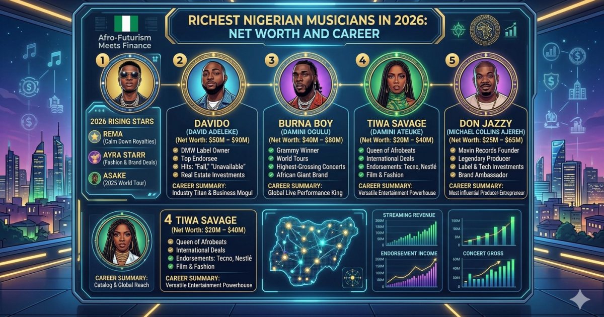 Nigerian music is no longer just a cultural export — it is a multi-billion-naira business empire. Over the past decade, Afrobeats has transformed from a regional sound into one of global music’s dominant forces, and the financial rewards have been extraordinary. The richest Nigerian musicians in 2026 are not simply artists who had hit songs — they are entrepreneurs, investors, label owners, real estate developers, and global brand ambassadors whose income streams extend far beyond anything a royalty statement could capture.